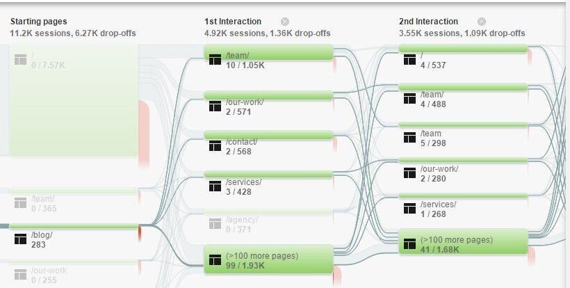 If you click on one of the pages in the first column you will have the option to highlight that section of the traffic, making it easier to see the journey that you are most interested in.