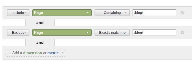 If you are only interested in seeing data about specific types of pages (for example your blog posts or pages about your team members), simply select “advanced” to the right hand side of the search box above the data table and specify what pages to include. Typically choosing “Include page containing /blog” and “Exclude page exactly matching /blog” (and any blog archive urls i.e “/blog/2” will show only your blog posts.
