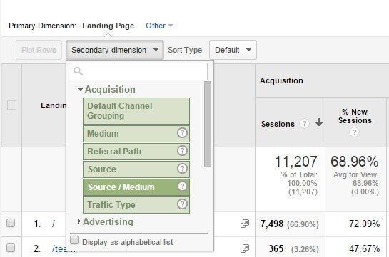It’s possible to see how users arrived at these pages, choose “Secondary dimension” and select “Source/Medium”.