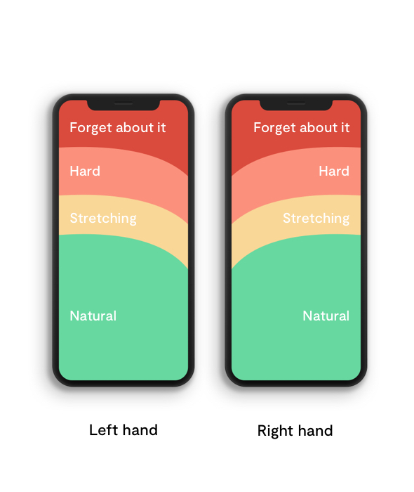 As designers, we aim to make the user experience as easy as possible, by constantly evaluating how our design decisions influence the user; what encourages interaction and what deters it? So, when we consider that most people use their thumbs when navigating a mobile screen and how much bigger phone screens have become, having navigation at the top starts to become less logical. Let’s take a look at the thumb placement of users on smartphone screens.