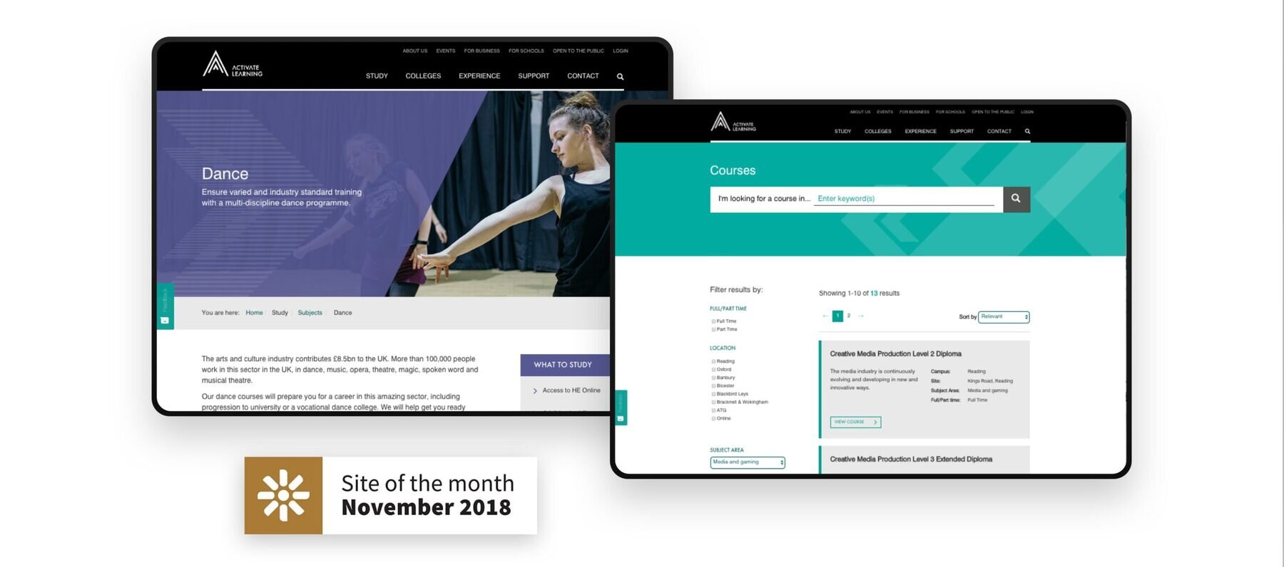 And guess what... The website we built for Activate Learning was selected as ‘Site of the month - November 2018’ by Kentico, making it one of just two websites built by UK agencies to be recognised in the top 10.