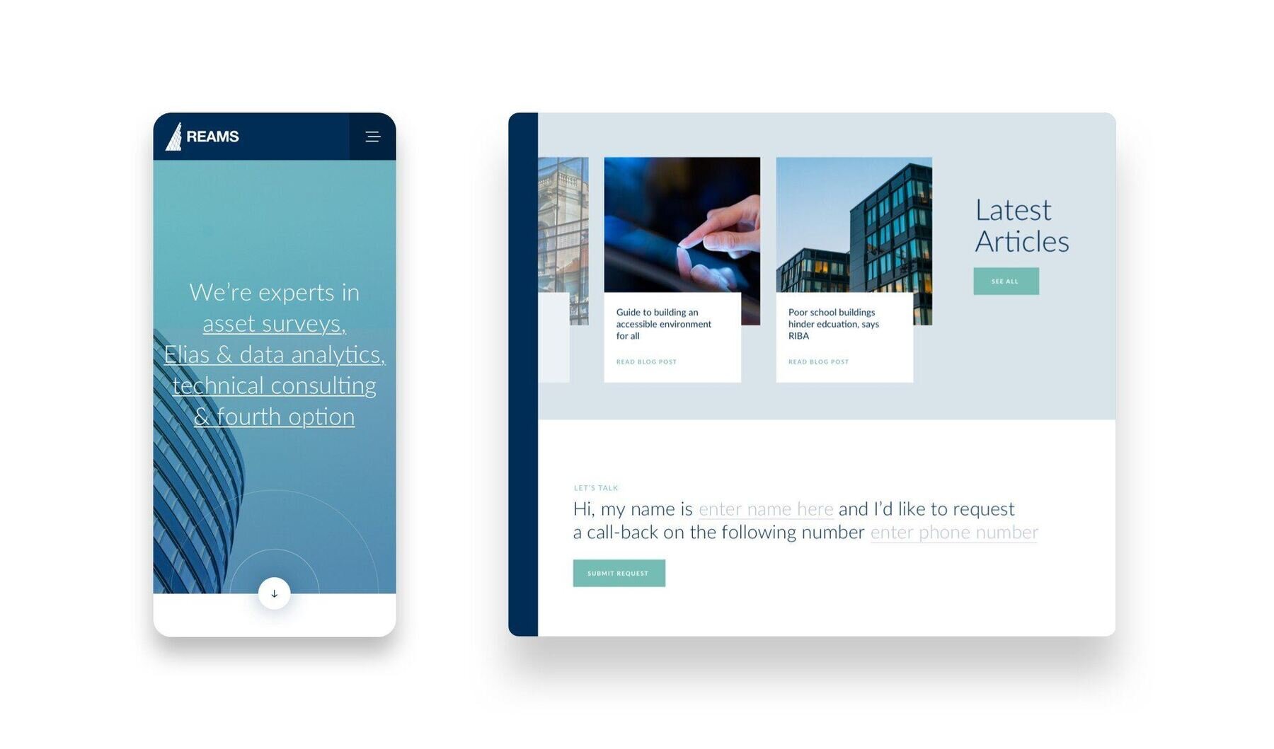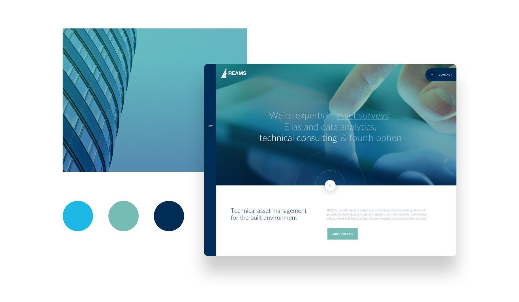 REAMS came to us looking for a new website. They wanted something fresh and new that wouldn’t be a replication of the old site in any way whilst still being in-line with their brand. It needed to be a modernised experience of their existing site that would re-position them in their market as more of a technical/digital services provider and distance them from where they were historically.
