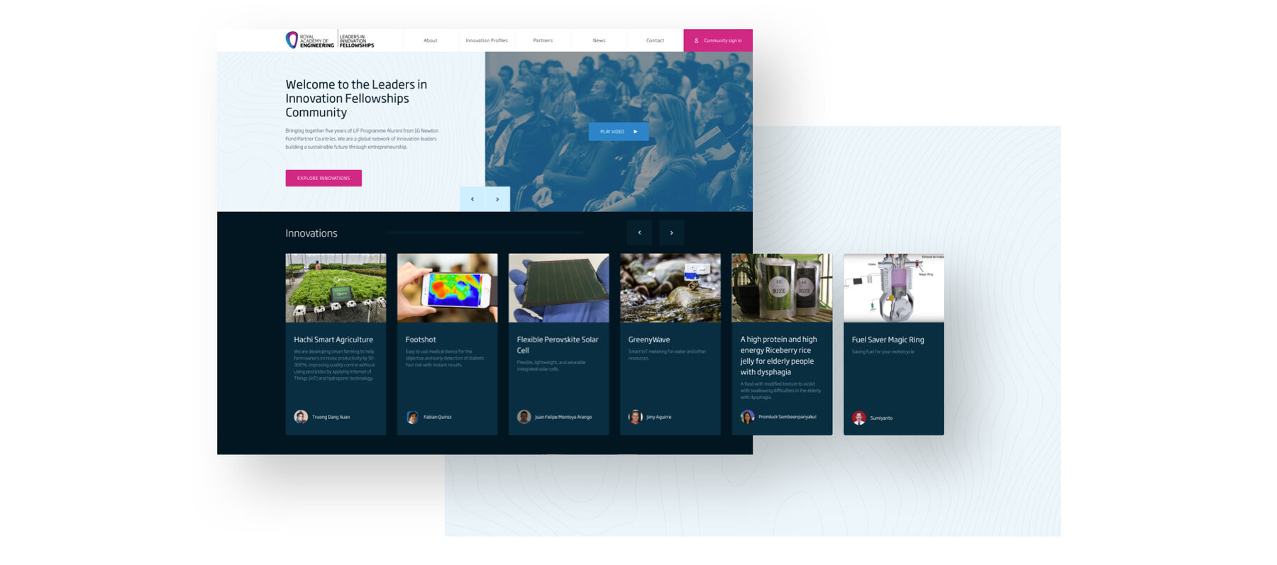 The Royal Academy of Engineering – Leader in Innovation Fellowships (LIF) Online Community is a place for LIF fellows to create, learn, explore and innovate together online. The website is a central hub for fellows. The objectives of the new website was to enable fellows to the following: