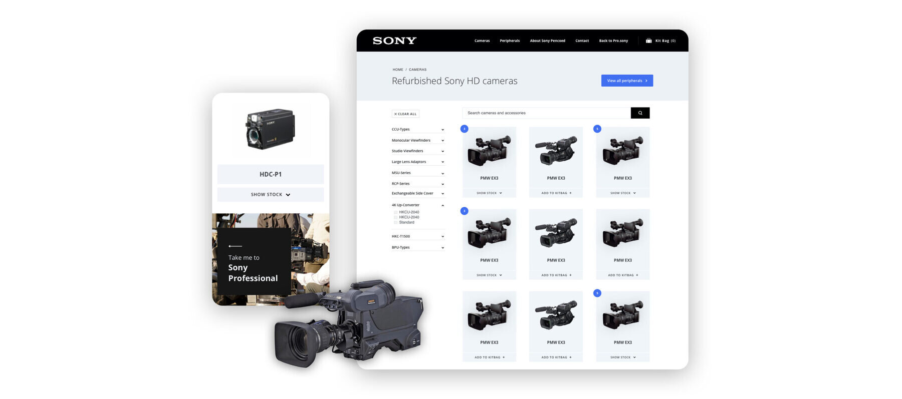 Having built the original Sony UK Technology Centre website in 2011, followed by a site refresh in 2015, it was a natural progression that the team approached us to build the new SONY Refurbished site too. The purpose of the refurbished site would be to allow Sony to advertise and gather enquiries for refurbished and graded cameras. There needed to be flexibility on the site for the admins to input individual data and statuses for each piece of equipment listed.
