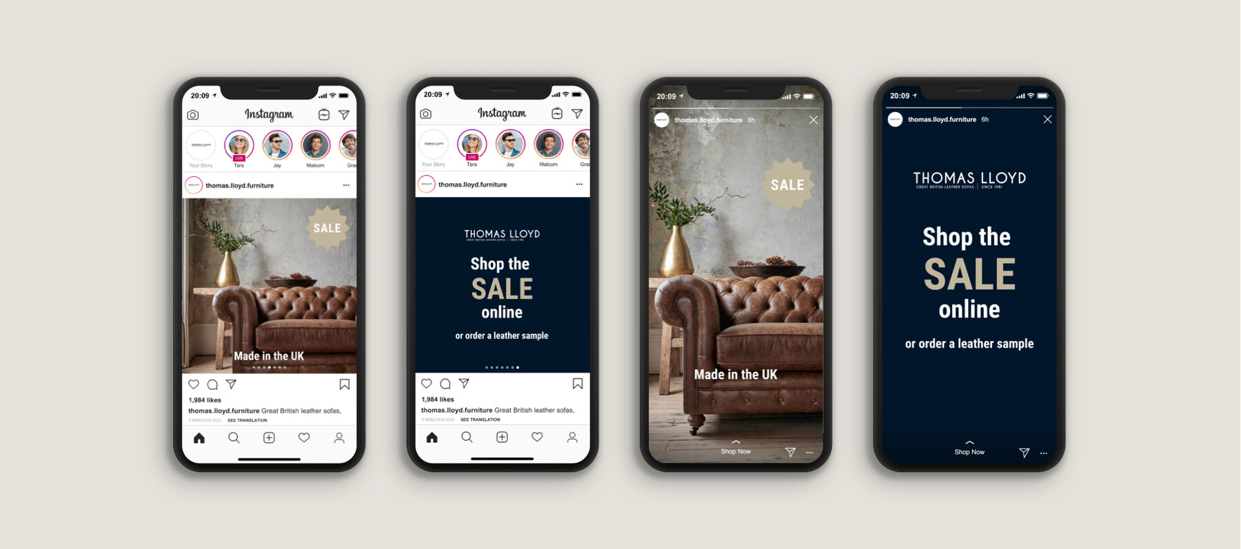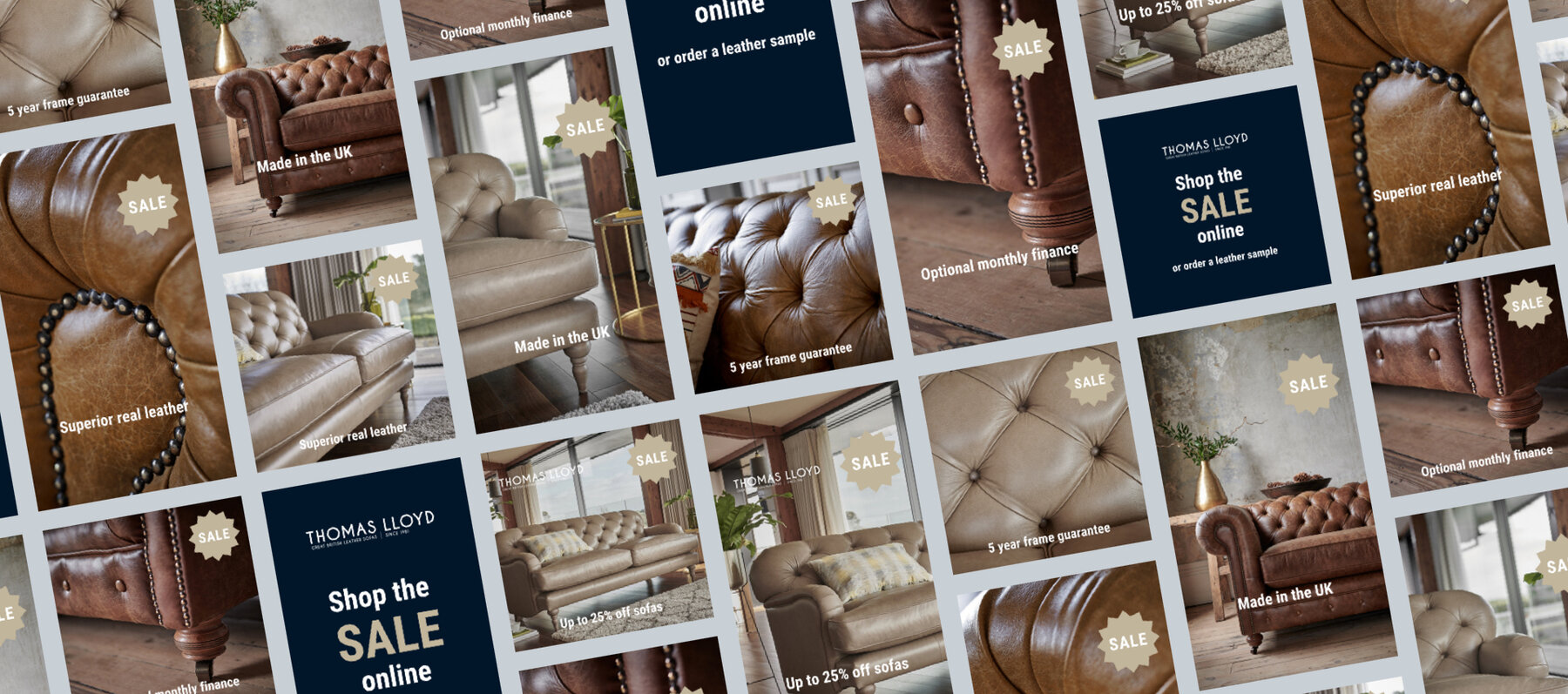 We set up and ran two different social media ads. The first set were traffic-oriented and worked to increase brand awareness and drive traffic to the site. The second set were dynamic remarketing ads and showed users the specific sofa range they had previously been looking at on the Thomas Lloyd website. By using these ads in combination, we were able to target users at different stages of the lead generation funnel, from completely new users to those who had visited the website and demonstrated interest in a particular product or range.