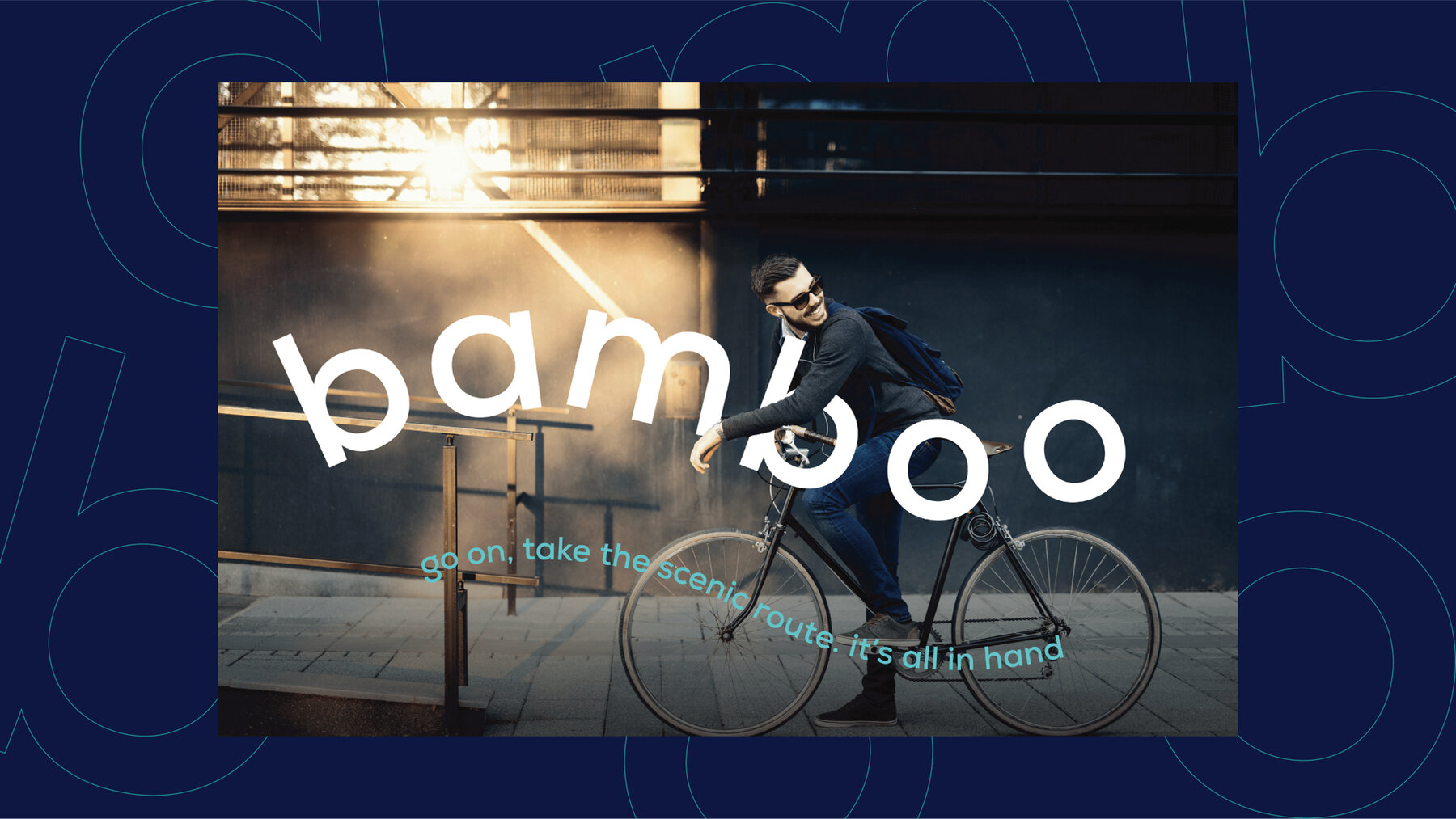 The flexibility and movement of bamboo inspired the visual language and logo, and enabled us to create a range of interesting graphics by flexing the name Bamboo into different shapes. We also used this technique in the photography we chose. Keen to steer clear of the traditional stock imagery found in the legal industry, featuring gavels and wigs, we opted for a more candid style. Focused on professional individuals, we applied the moveable typography, moulding it around the scene to show how flexible and adaptable Bamboo can be.