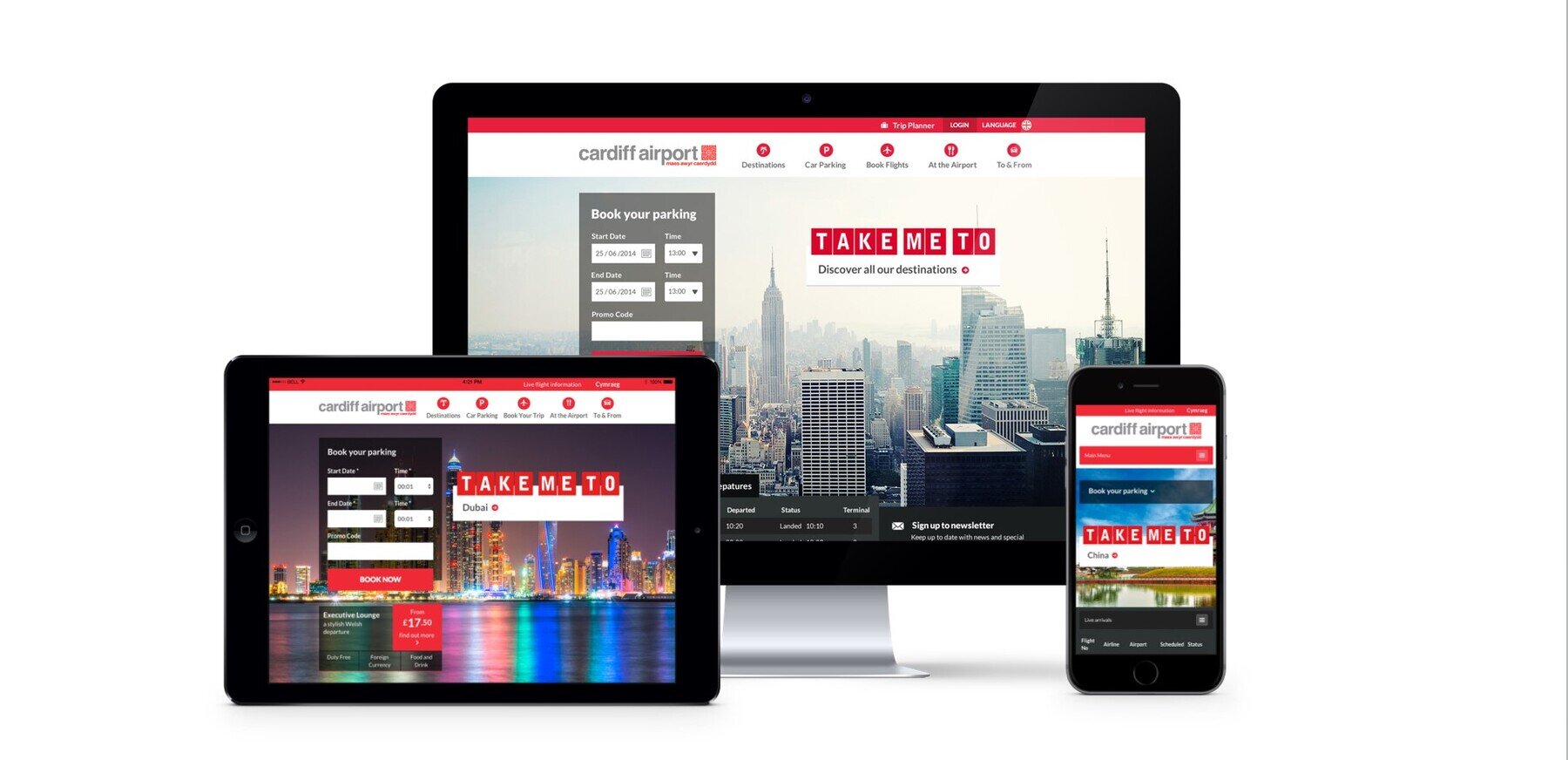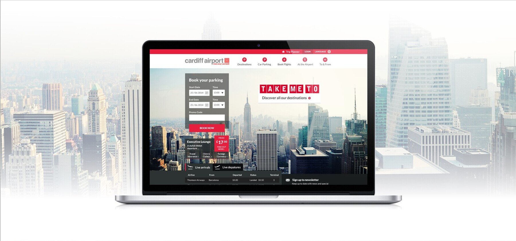 The objectives that the Airport set out for the website were that it will help to change people’s perceptions, showcase all destinations clearly and promote airport facilities. They were also keen to increase car parking bookings from the website to reduce the amount paid on parking commission. Cardiff Airport also wanted the website to adhere to their current brand guidelines and incorporate their latest marketing campaign, ‘Take me to…’, whilst illustrating a positive experience for the user that would also be transferred offline.