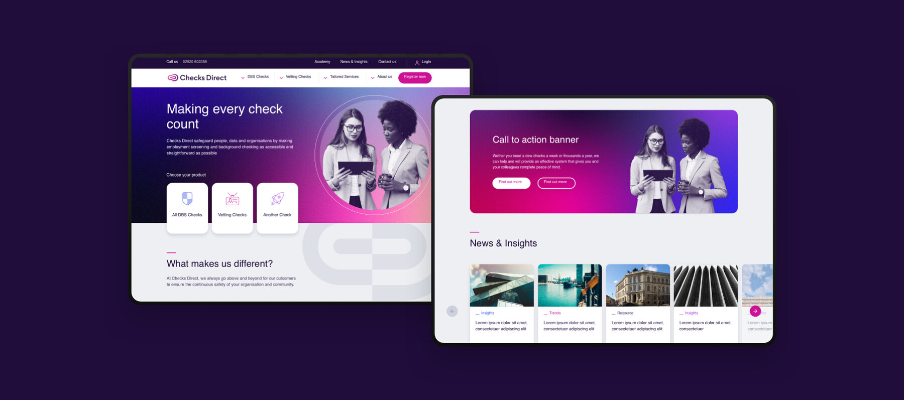 The collaborative nature of this brand project speaks volumes in terms of its success. We seamlessly worked with a large team of specialists at Checks Direct team to develop a brand that truly represented the company and its’ ethos. By working with a specialist project manager, UX designer marketing director, sales team, digital transformation consultant, operations director and even the CEO, we were able to get under the skin of the brand and create a brand that would give Checks Direct a strong position in the market and a launchpad for growth.