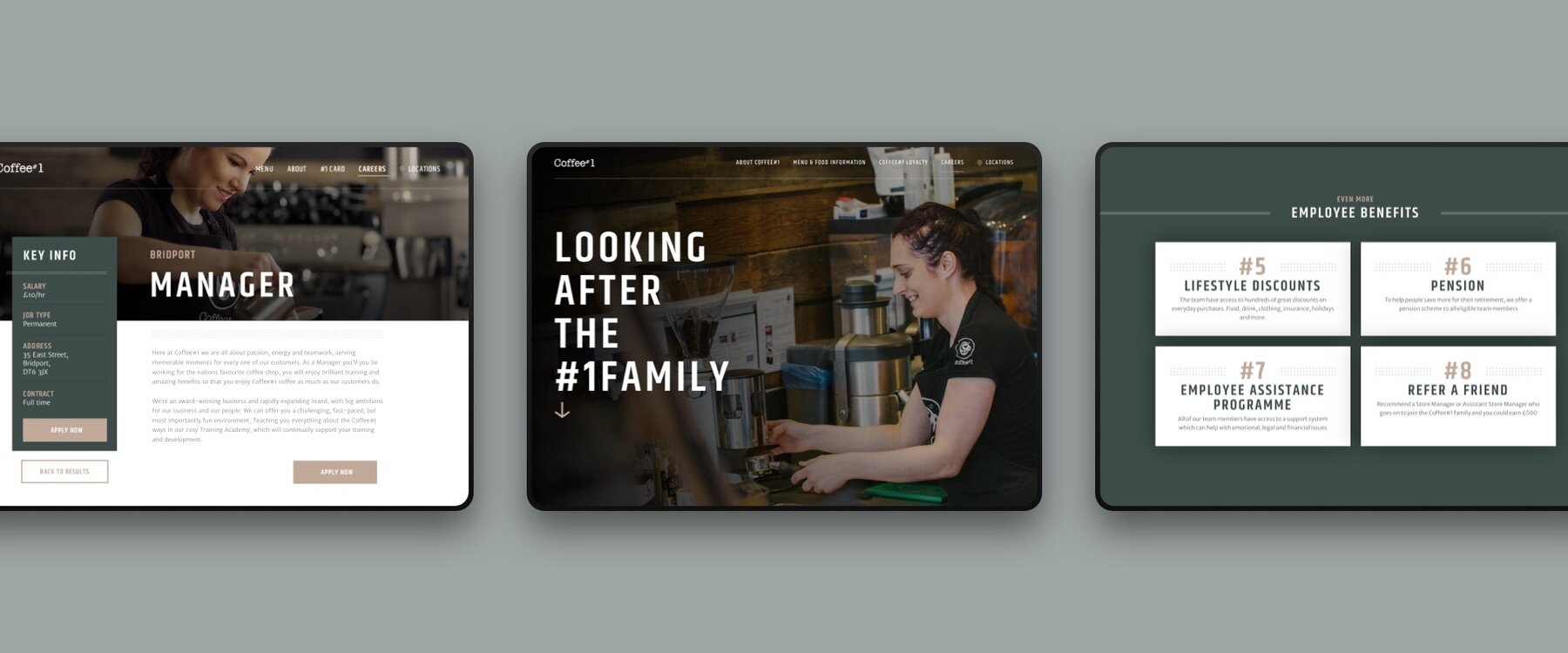 As well as the core functionality the site also needed to support the expansion of the business by equipping the site with the option to attract great employees, and integrate the current recruitment platform. The site also needed to incorporate changes to the voucher and loyalty scheme to maximise these areas of the business. The project team scoped, built and tested the different integrations in connection with Coffee#1 and their 3rd party suppliers and the design was heavily led by the content framework. The result is a site that delivers content specific to the user and their location, in a quick and concise manner.