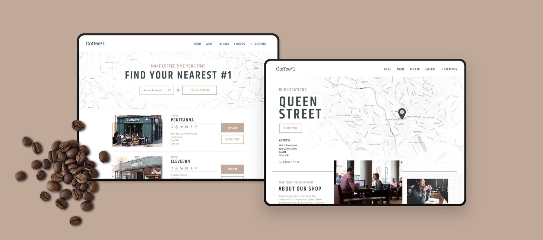 First and foremost the new Coffee #1 website needed to showcase the brand, reinforcing their position as the ‘place to stop and sit’. It needed to emphasise key brand messages and values, and align the company’s brand identity and tone of voice. The site also needed to meet the expectations of mobile users and the user experience needed to be given serious thought. Having long been fans of the business the Spindogs team couldn’t wait to tackle the new project and provide Coffee #1 website users with a site that reflected the in store experience.