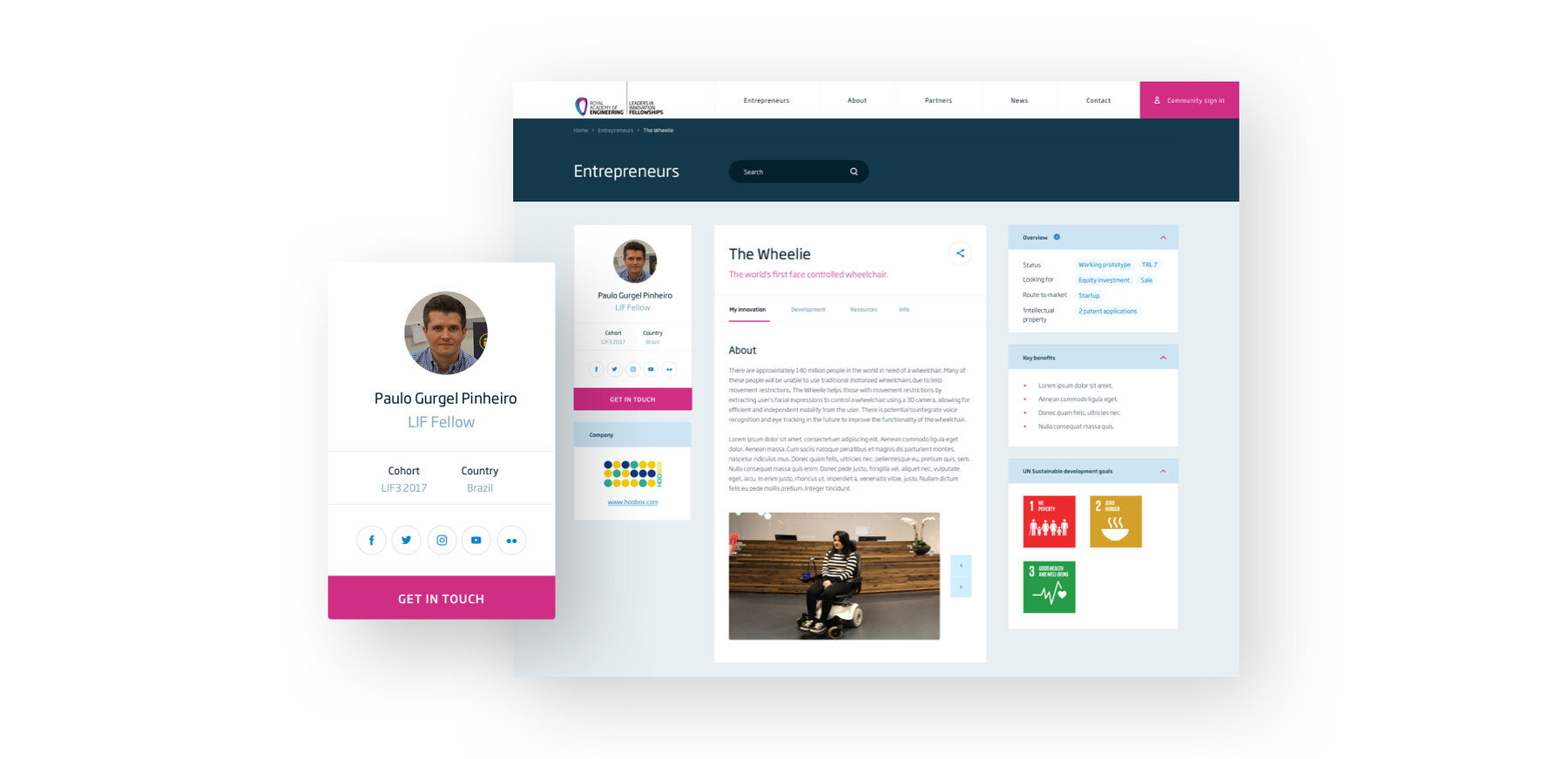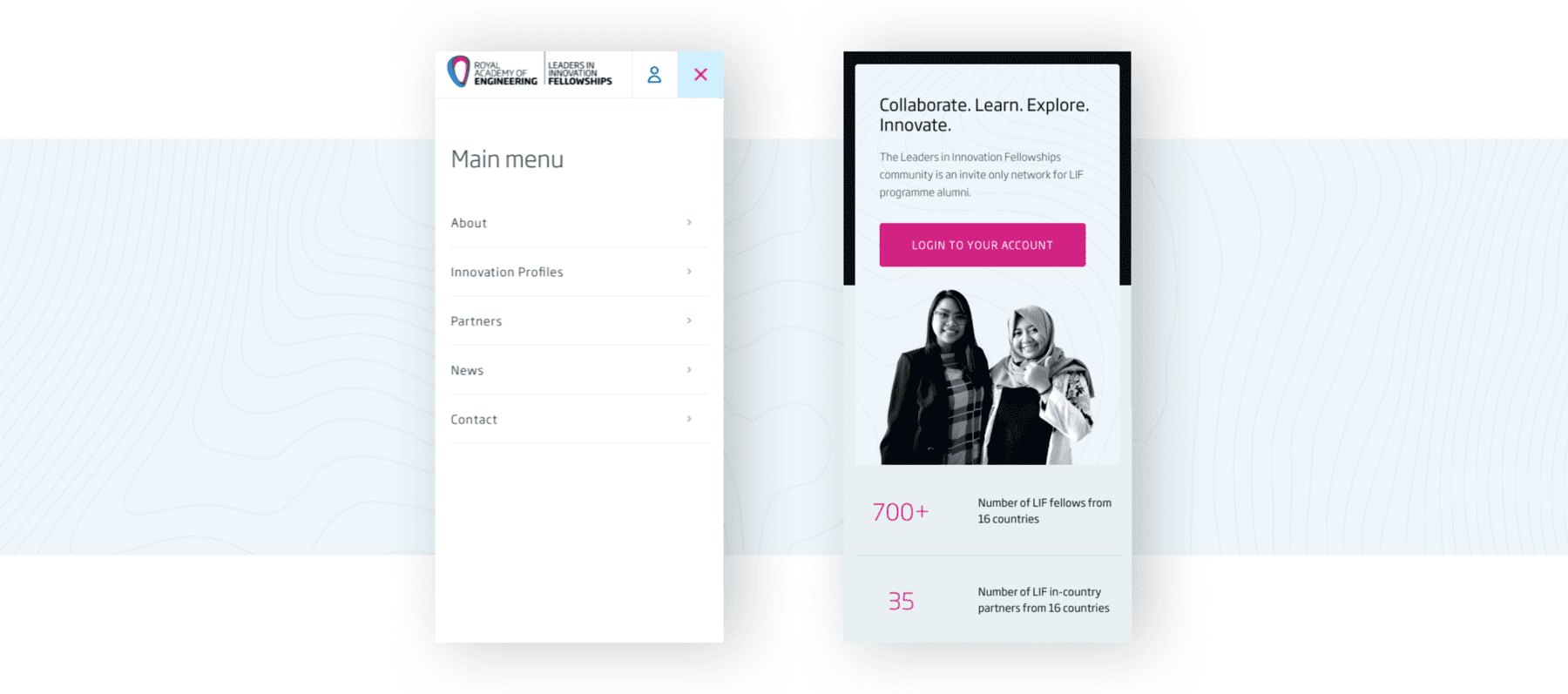 The Royal Academy of Engineering – Leader in Innovation Fellowships (LIF) Online Community is a place for LIF fellows to create, learn, explore and innovate together online. The website is a central hub for fellows. The objectives of the new website was to enable fellows to the following: