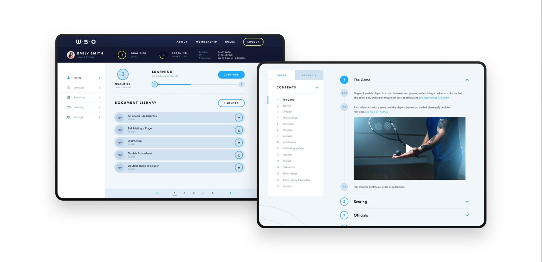 World Squash Officiating wanted to create a website where users could interact with the learning modules and complete assessments themselves, and be scored and given a certificate online. This meant that the team required a bespoke solution that would talk to the main website. We needed to create a system where the team could upload learning materials and content in WordPress, and users would be able to edit the questions and complete answers based on the videos they’ve watched. The system would then read and translate this information into data to create the learning area and assessments, removing what the team would have to do manually as part of the qualifying process.